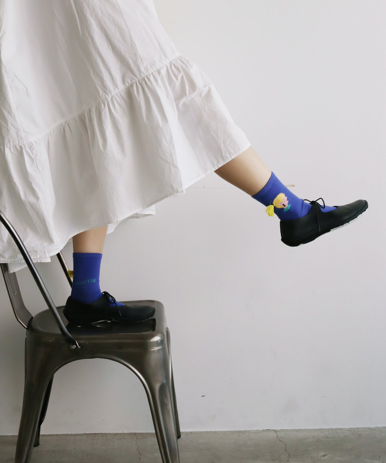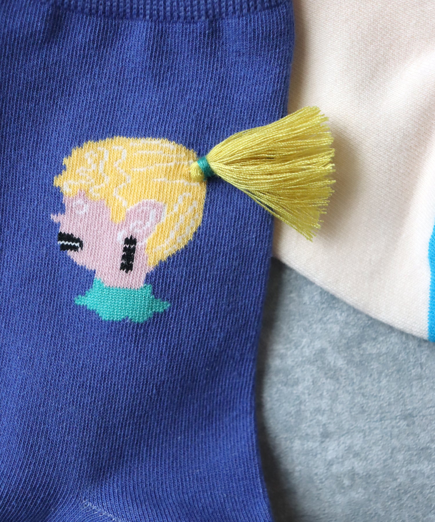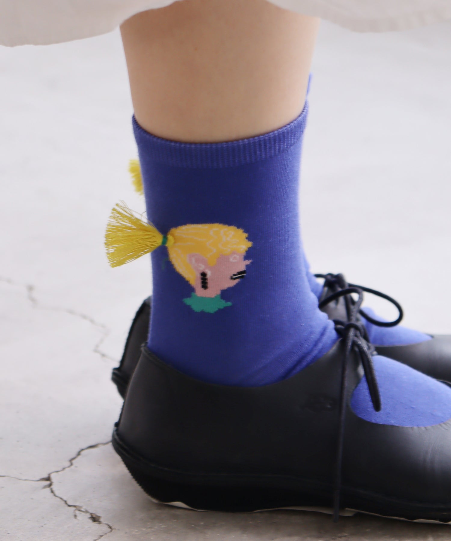 しなやかで伸びのよいハイゲージ綿糸で履き心地も◎タッセルは一つひとつ手付けで、細部までこだわった仕上がりに。足もとから楽しめる、ユニークで可愛いデザインです。