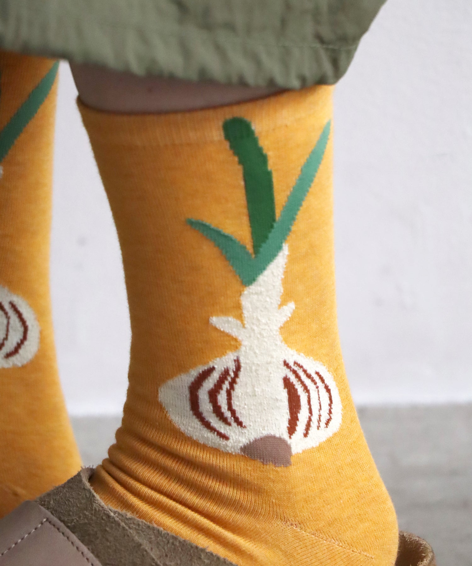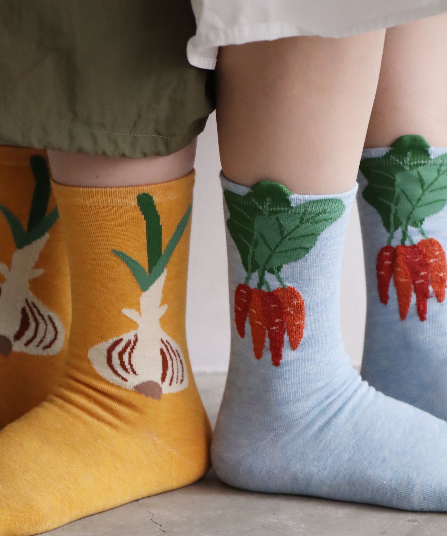 玉ねぎとニンジンをモチーフにした、2足組ソックス。