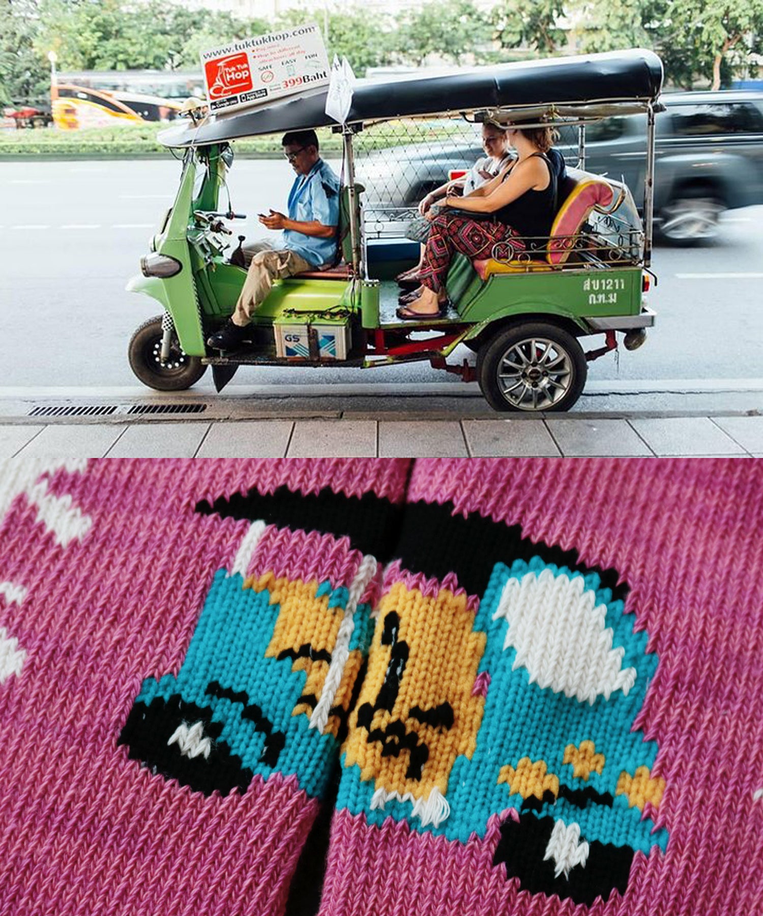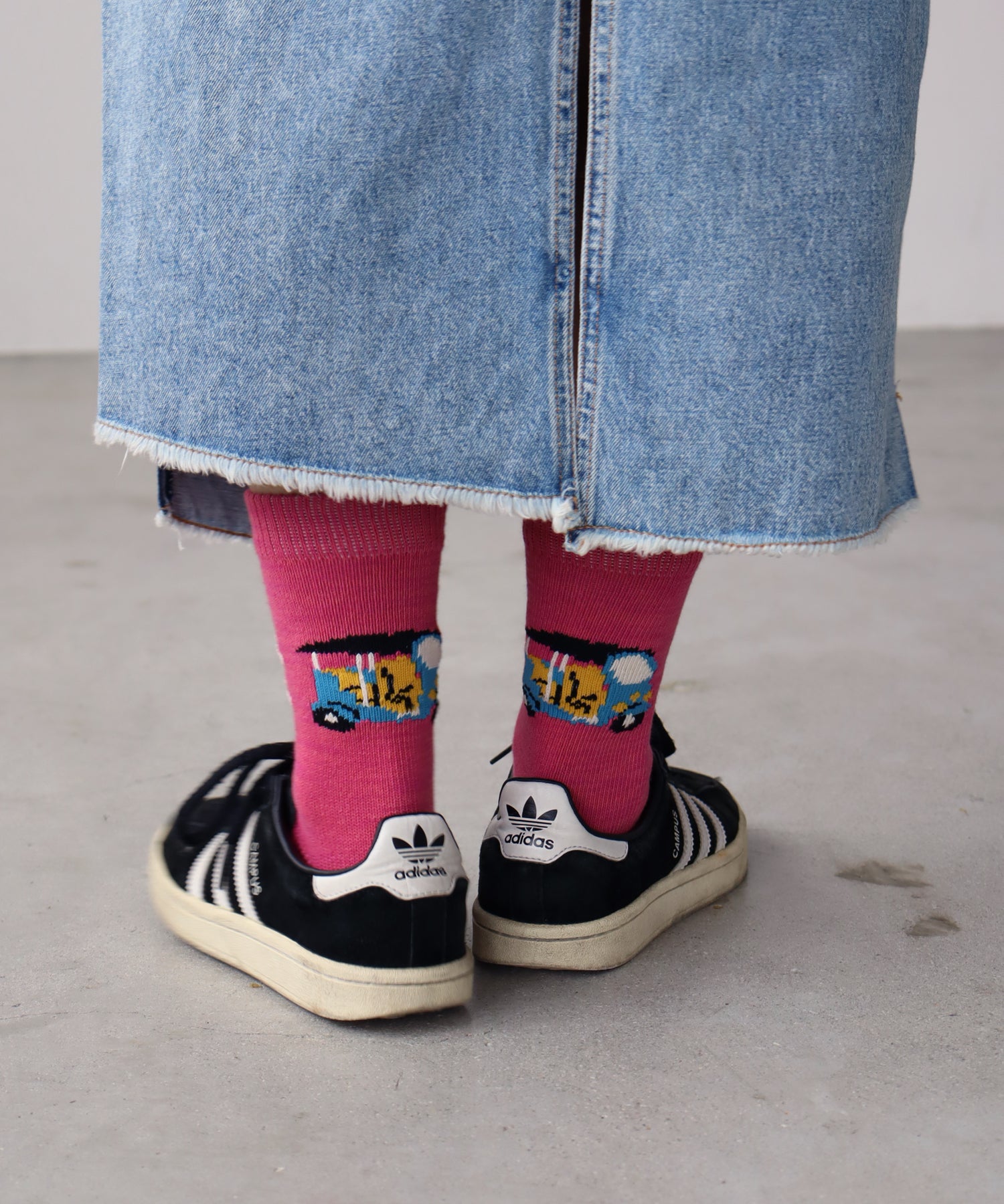 なんだかダサくてカワいくてオシャレセーターみたいなざっくりローゲージソックス。日本でヘイタクシーは勇気がいるかも。。。