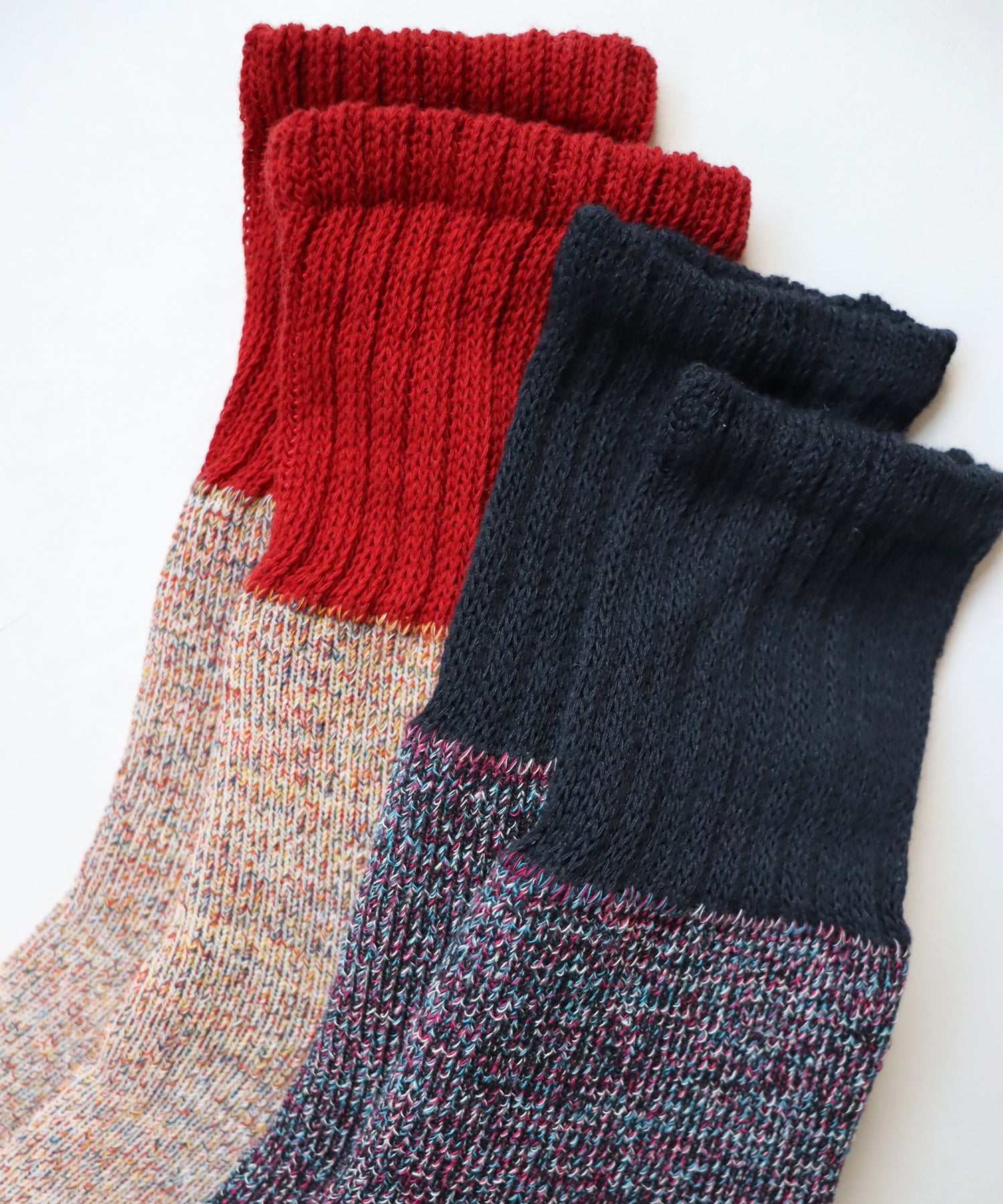 【2足組】ローゲージ ミックスパイル クルーソックス