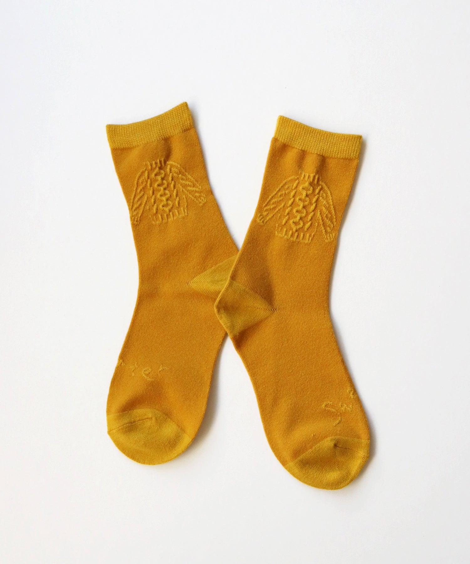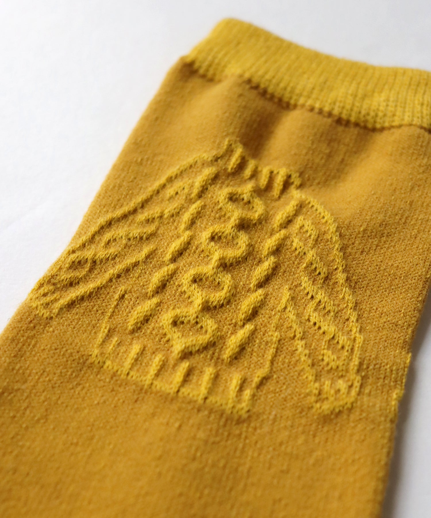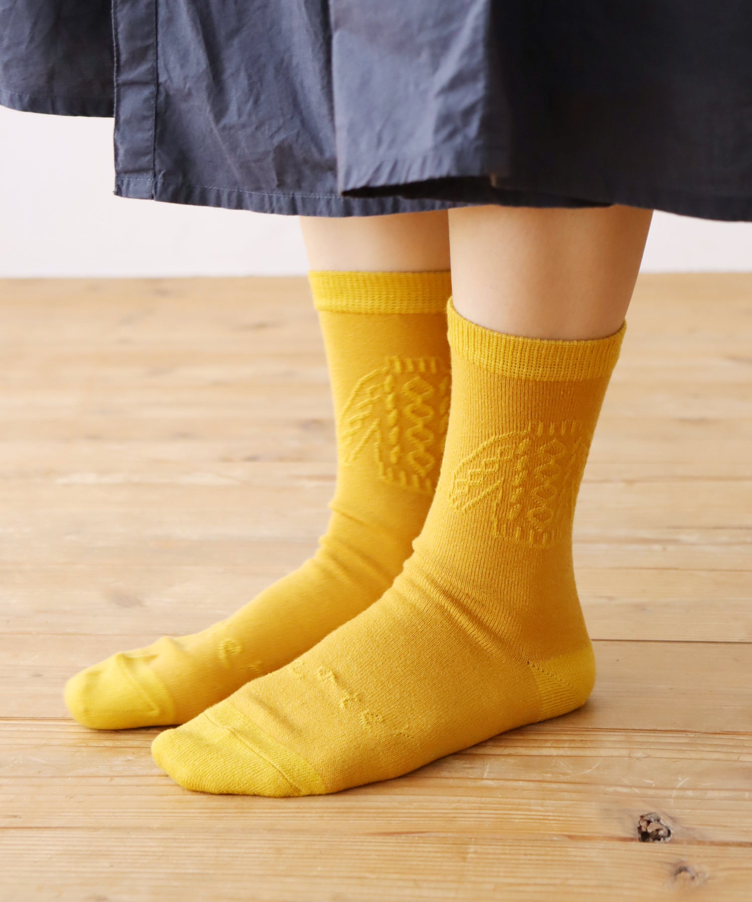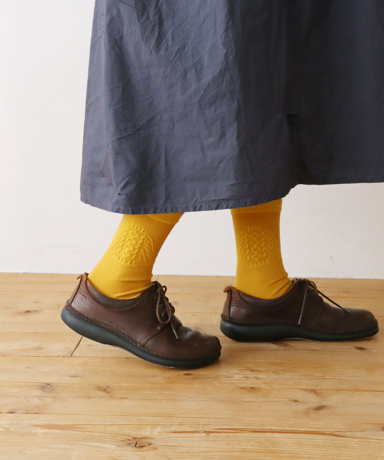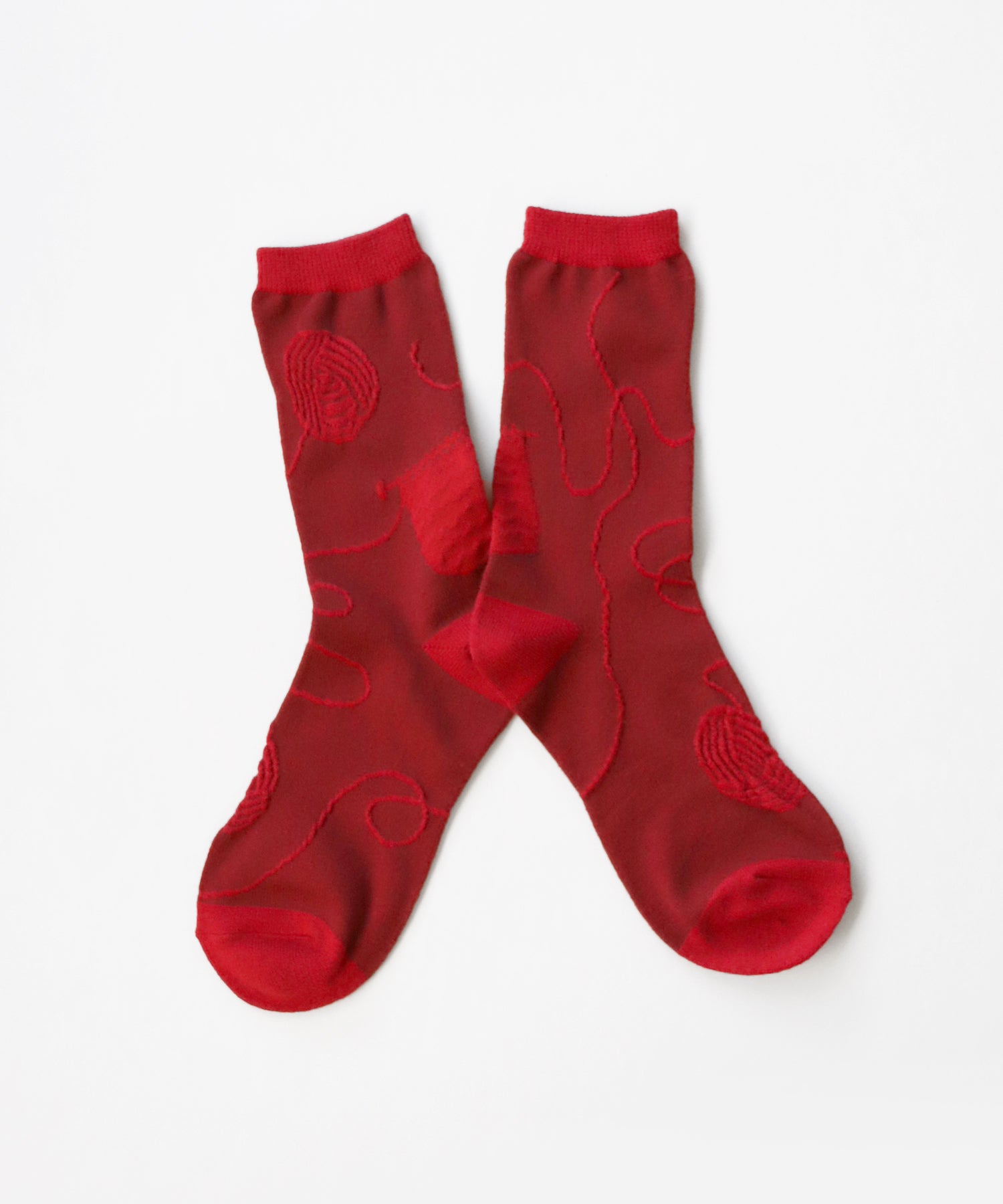 立体的な編み柄が目を引く、遊び心のあるデザインソックス。毛糸玉や手編みのセーターをモチーフに、季節感をさりげなく取り入れました。