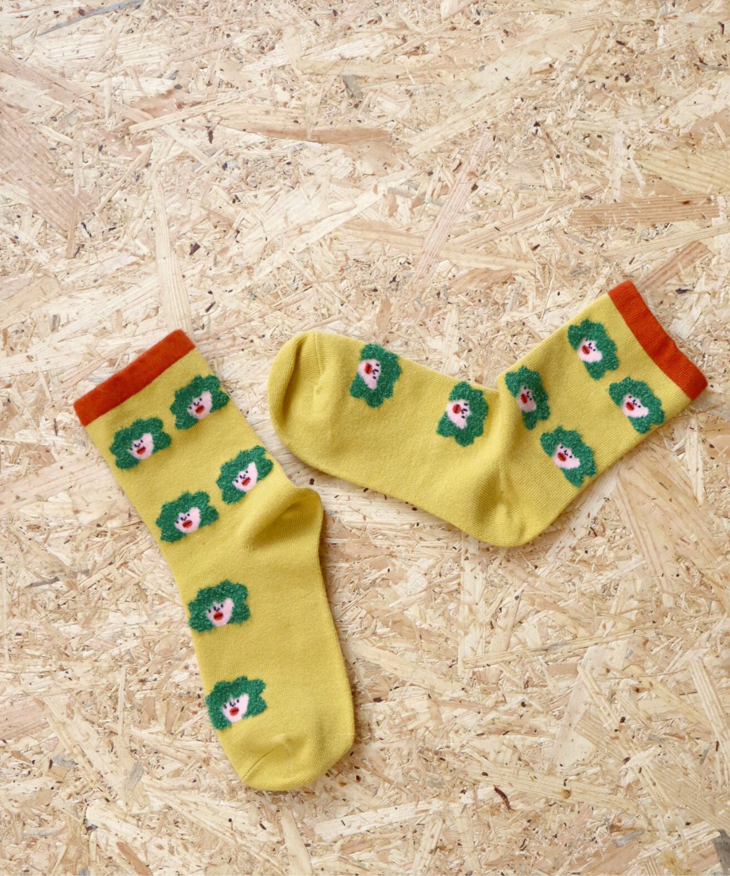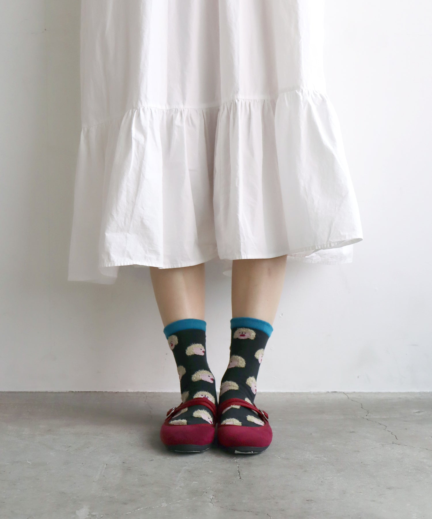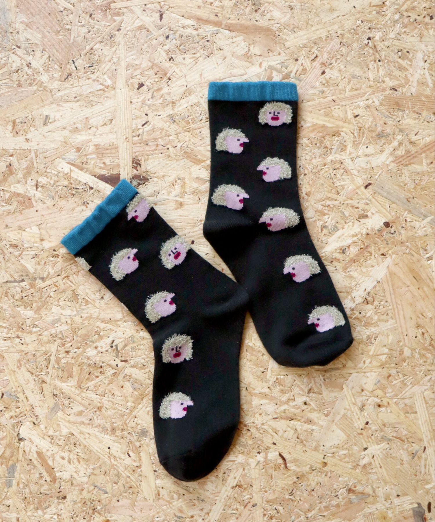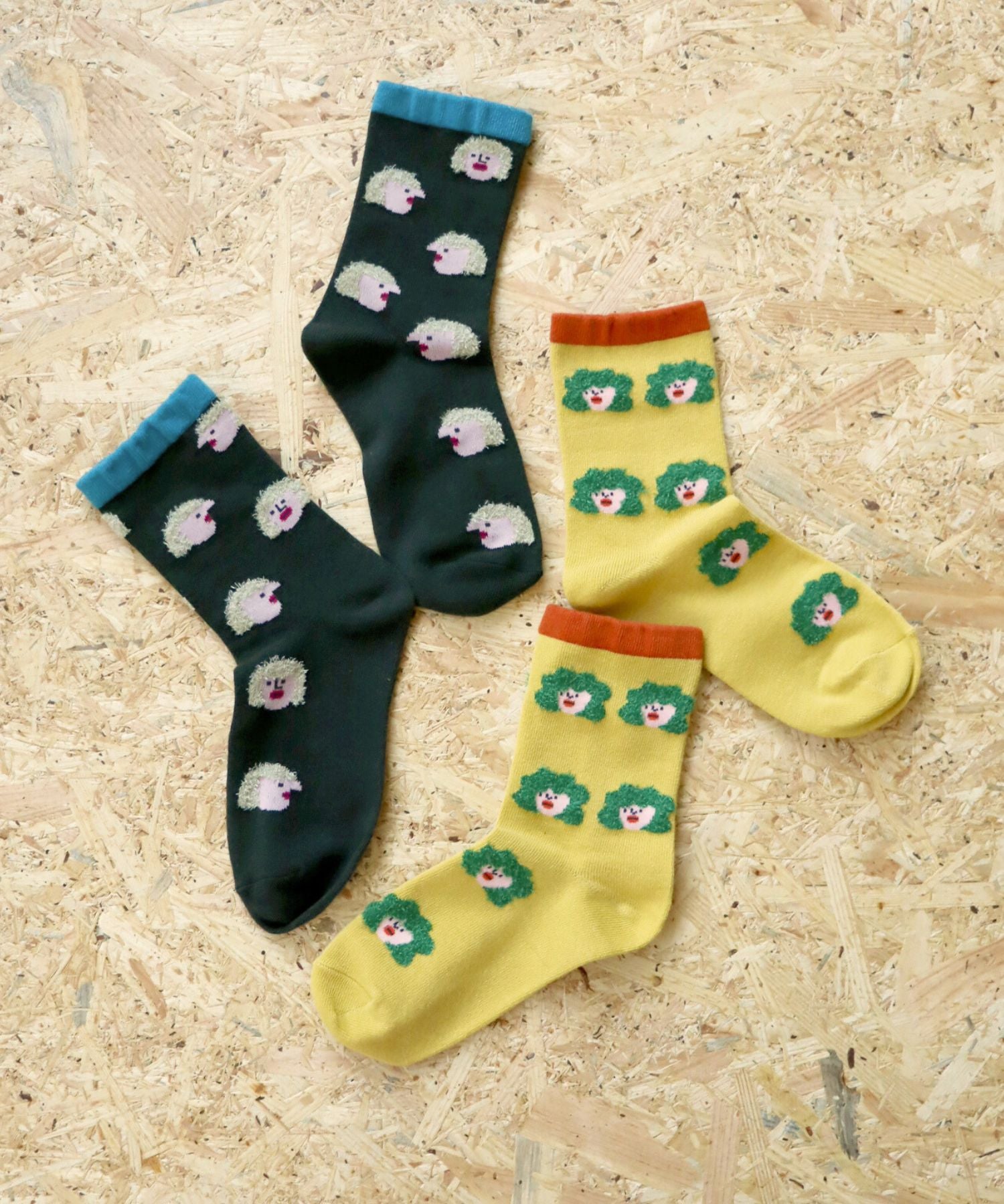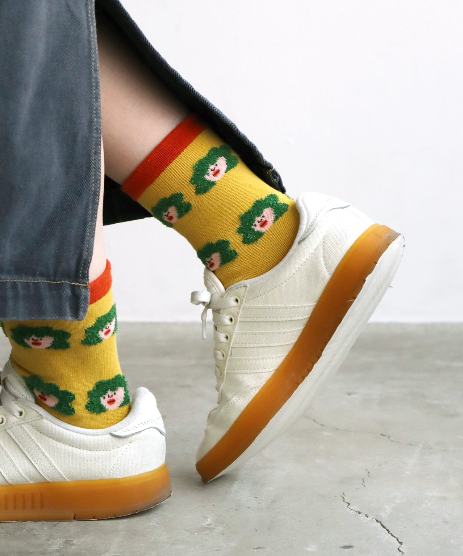 髪がふさふさな女の子たちがぎっしり並んだ、ユニークな総柄ソックス🧦スカートからちらっと見えるだけでも、ちょっと目を引くデザインです。履くだけで遊び心たっぷりのコーデに✨履き口は柔らかく編みたてています◎