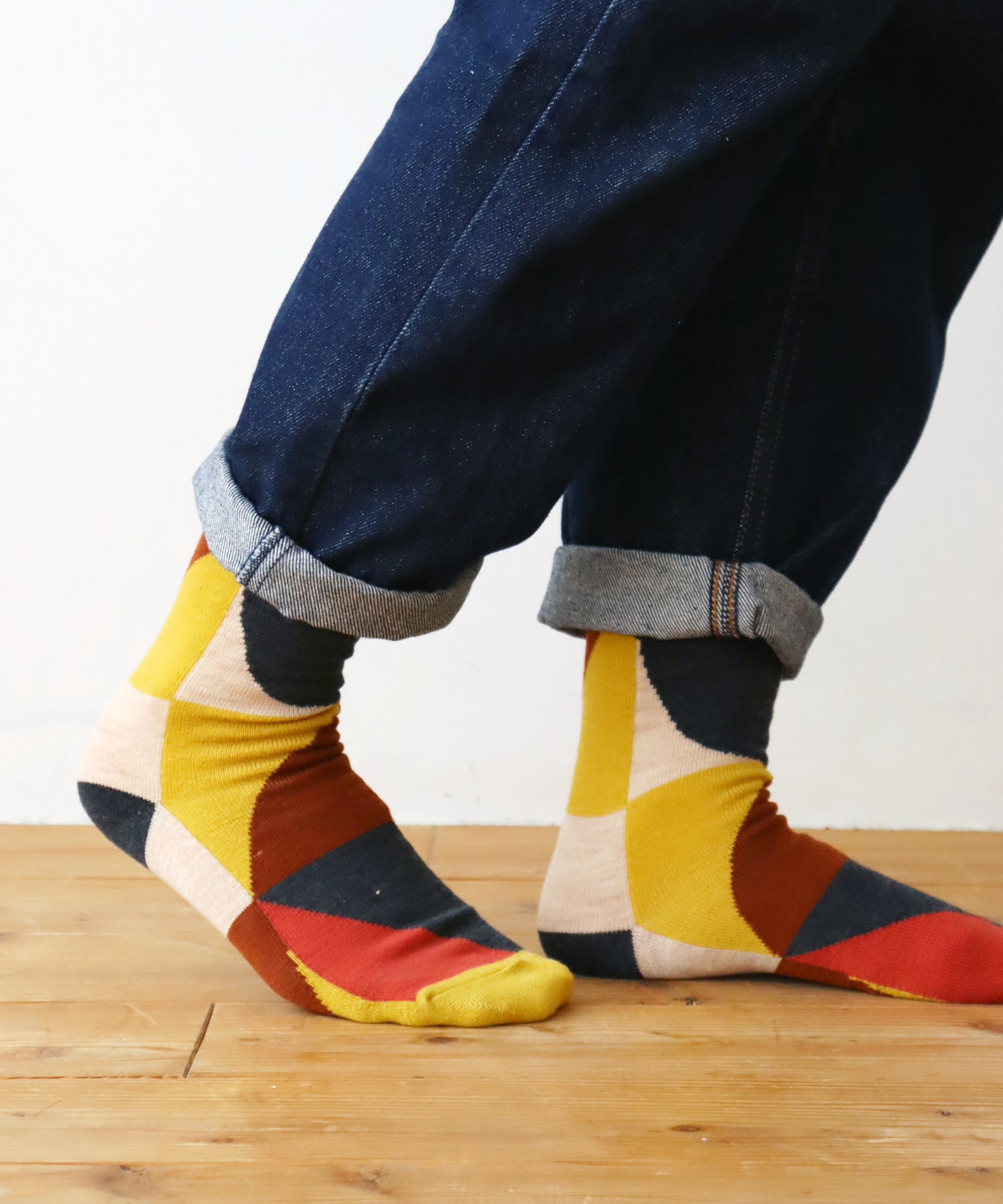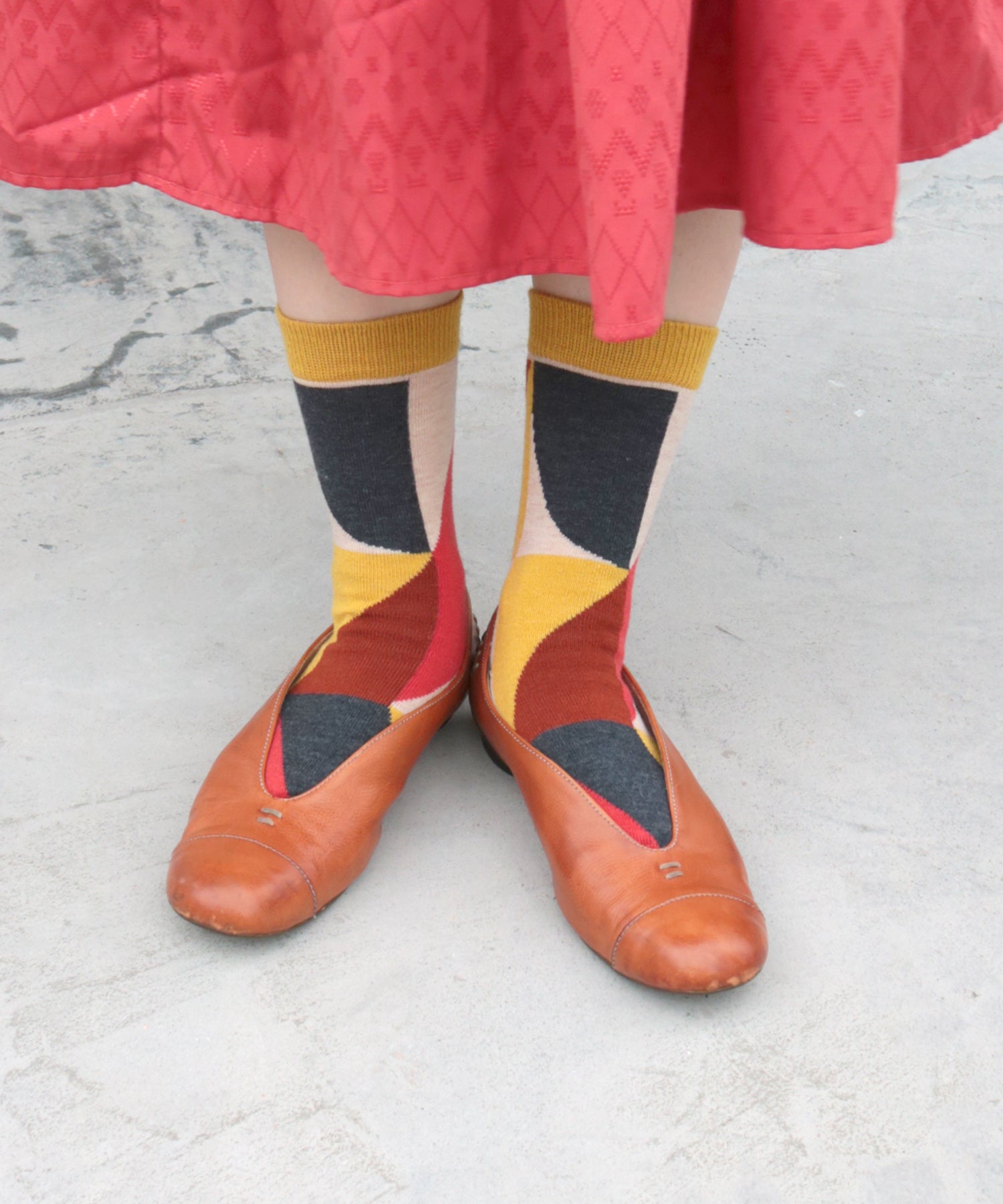 個性的で存在感があるのに普段使いもしやすい不思議な色と柄。コーデのポイントにチラリと見せればオシャレ度急上昇まちがいなしだってさ~!はい、ホントに履くと超かわいい秀逸なデザインなんです。少しウールが入ったなめらかで上質な風合いも魅力的です。