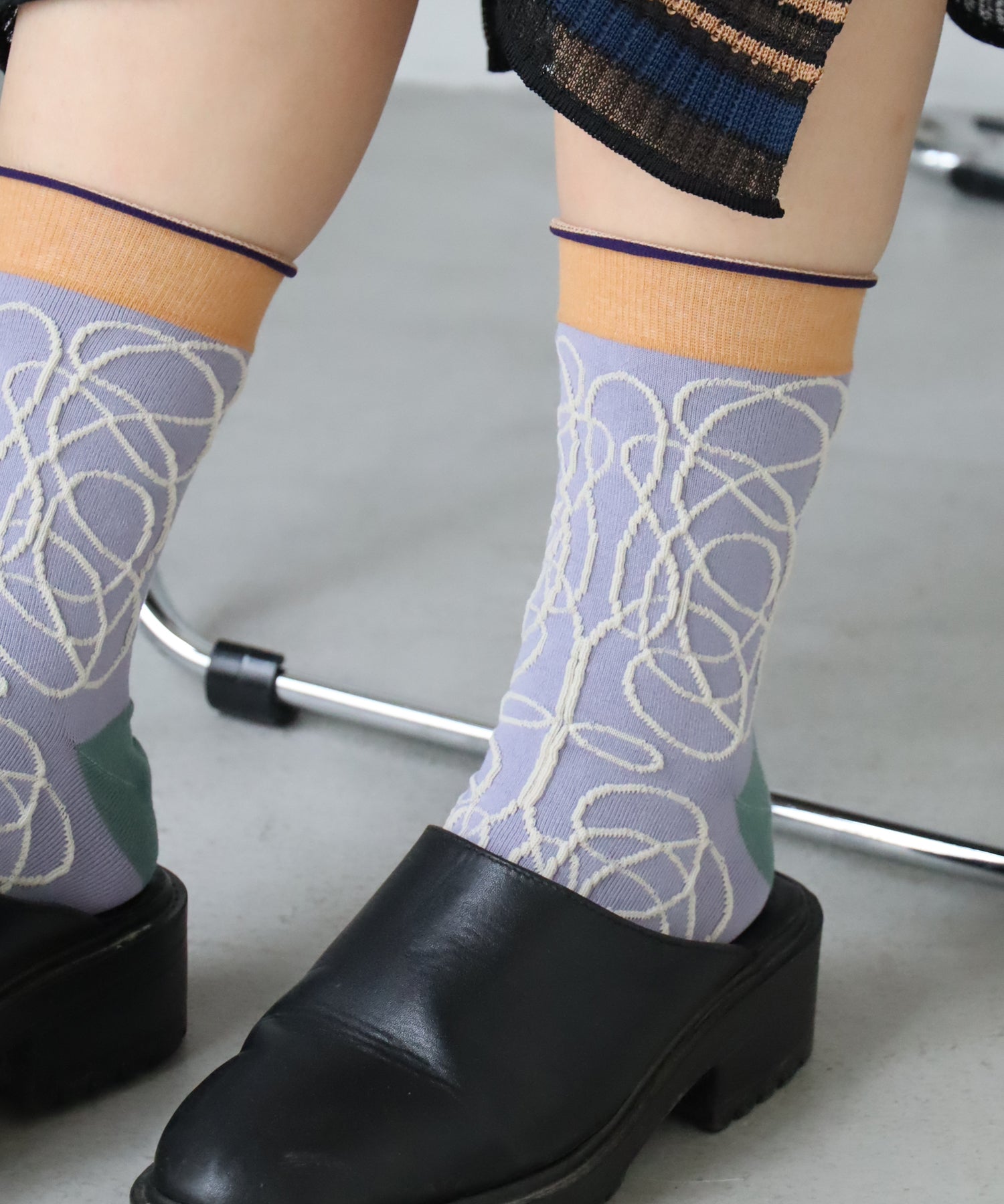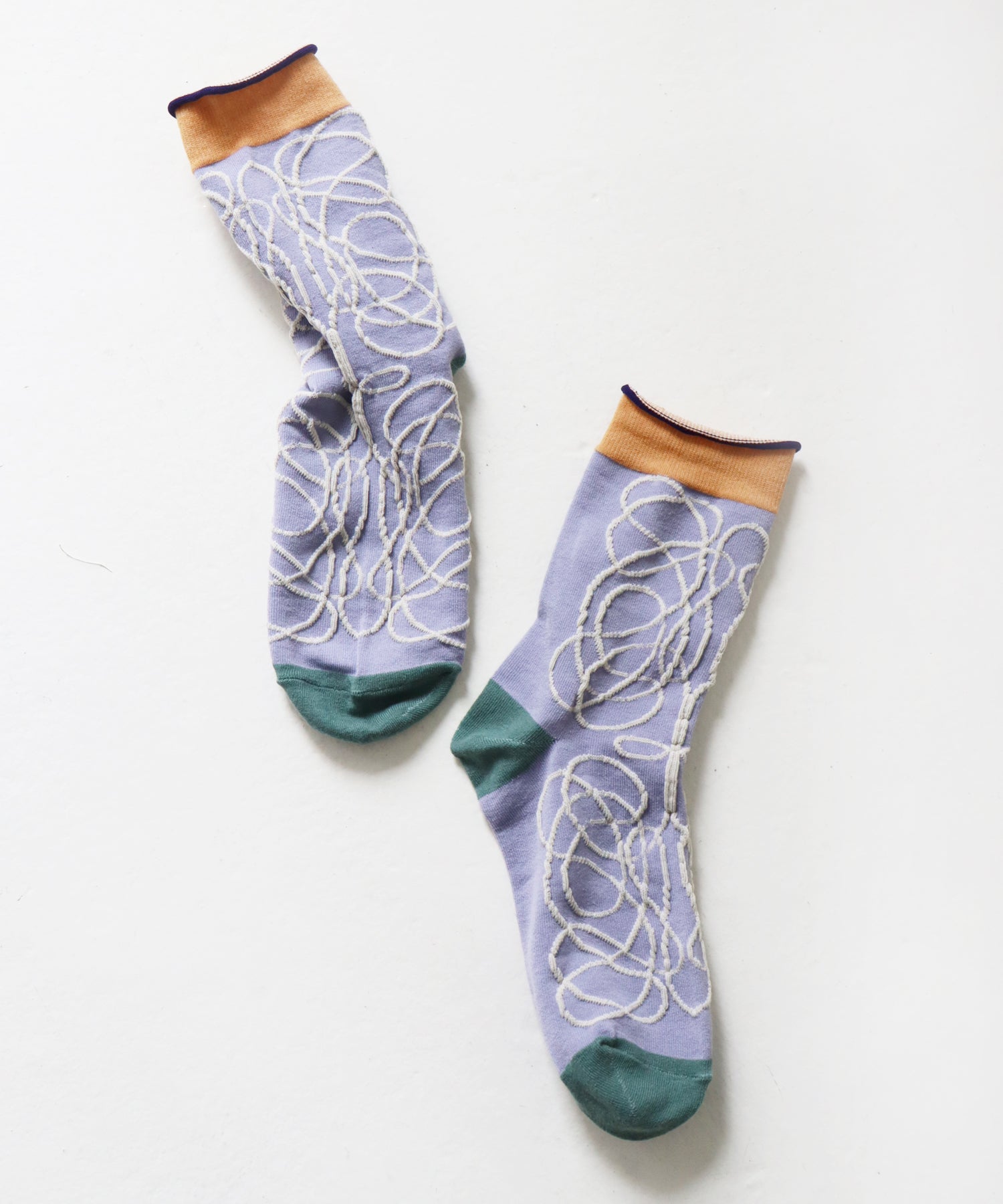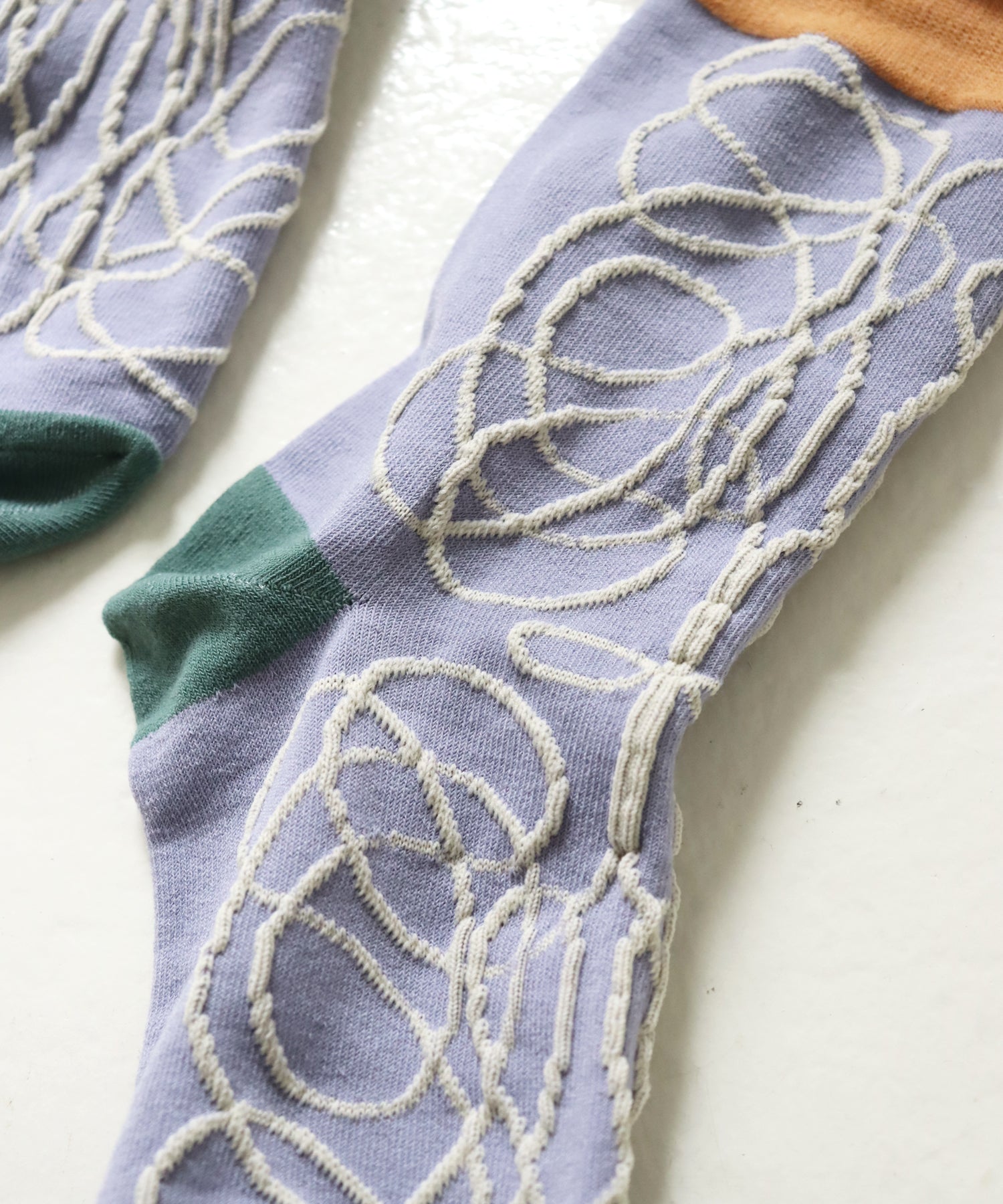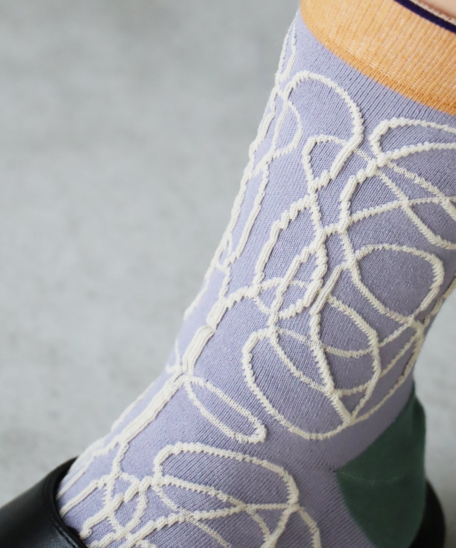 上品で繊細なロープ模様を、フロート編みで立体的に表現したクルーソックスです。