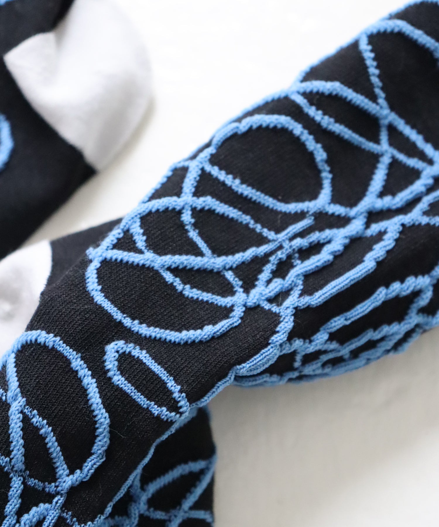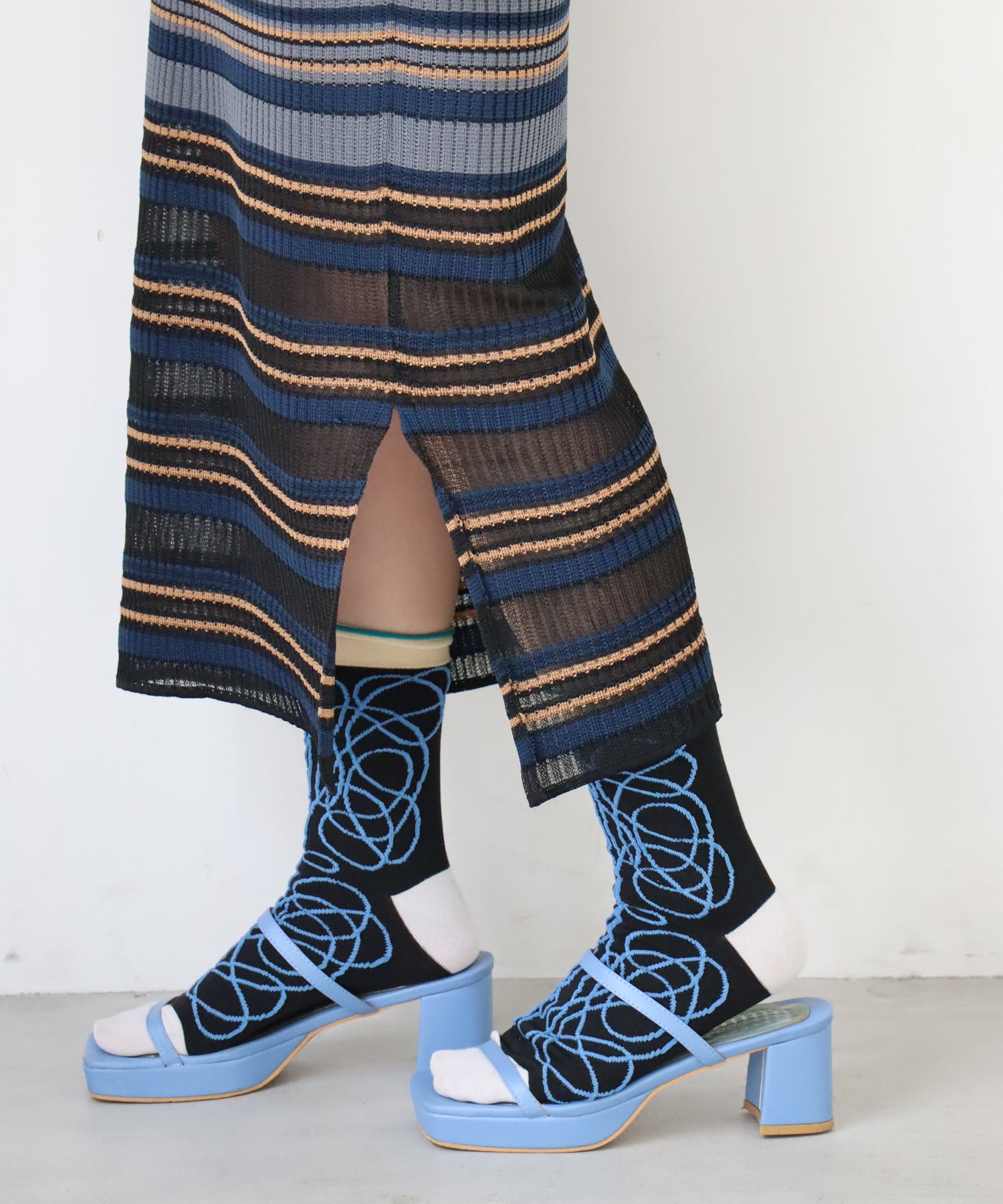 細かい編み目のハイゲージ仕立てだから、しなやかな伸びとやわらかなフィット感が魅力。ロープがほどよく浮き上がることで、足もとにさりげない陰影と高級感を添えてくれます。