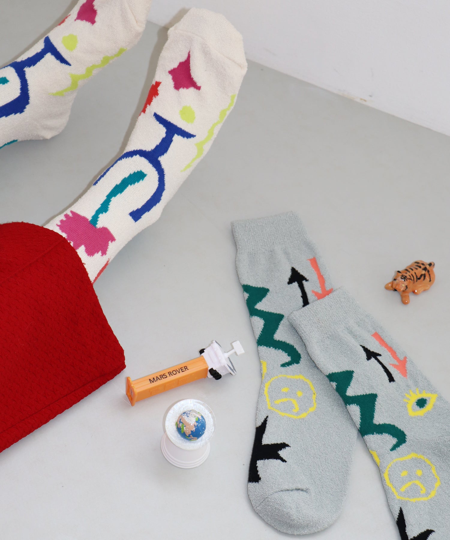 おもちゃ箱をひっくり返したみたいに、“好き”がごちゃ混ぜになった HAPPYなミックス柄 のソックスです。
