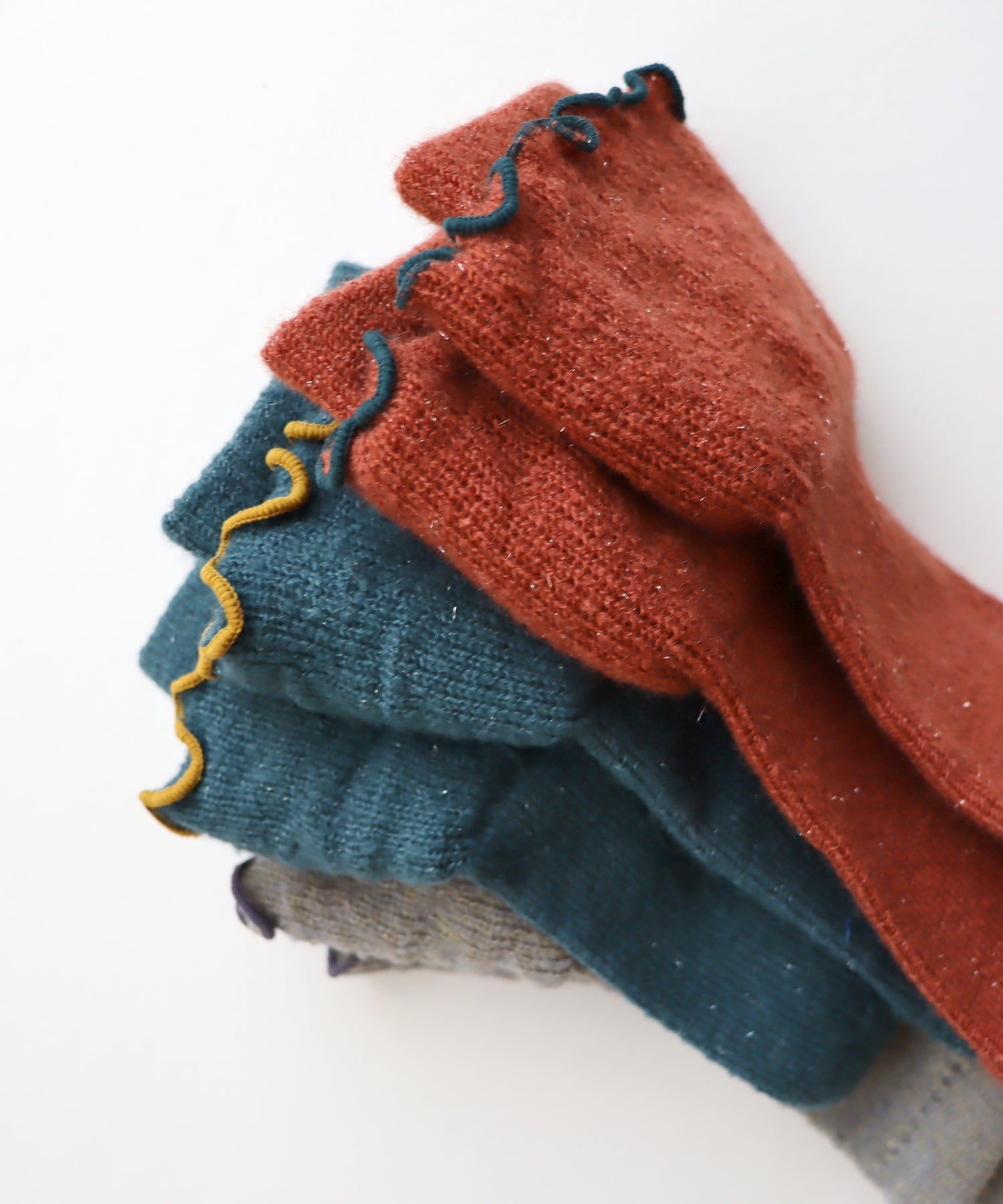 指なしタイプで手先が使いやすく、スマホ操作も楽ちん。軽やかなのにしっかり暖かく、やわらかく光るラメ糸を織り込んで冬のファッションにアクセントを添えてくれます。