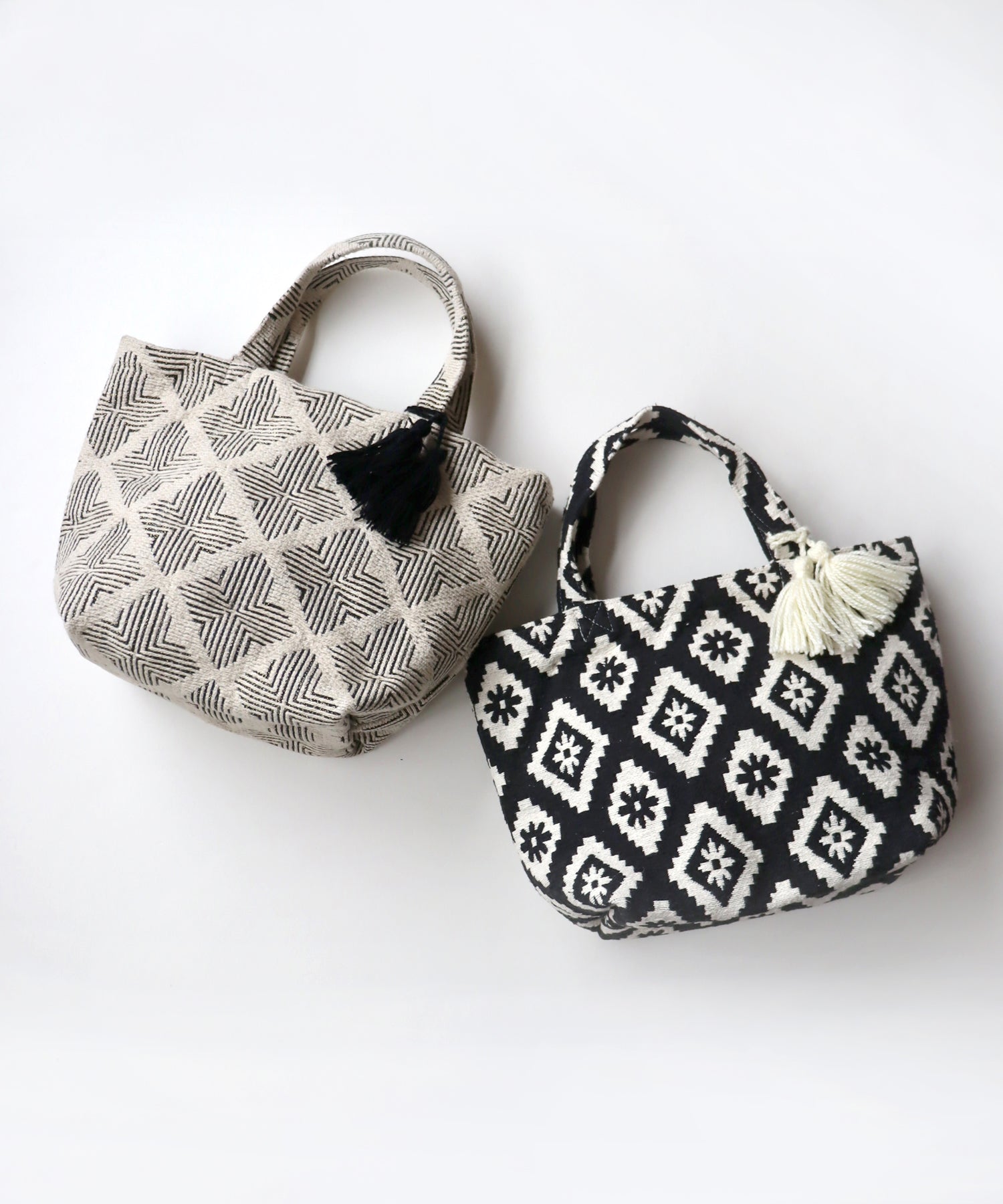 厚地インドジャガードで仕立てたシンプルバッグ。