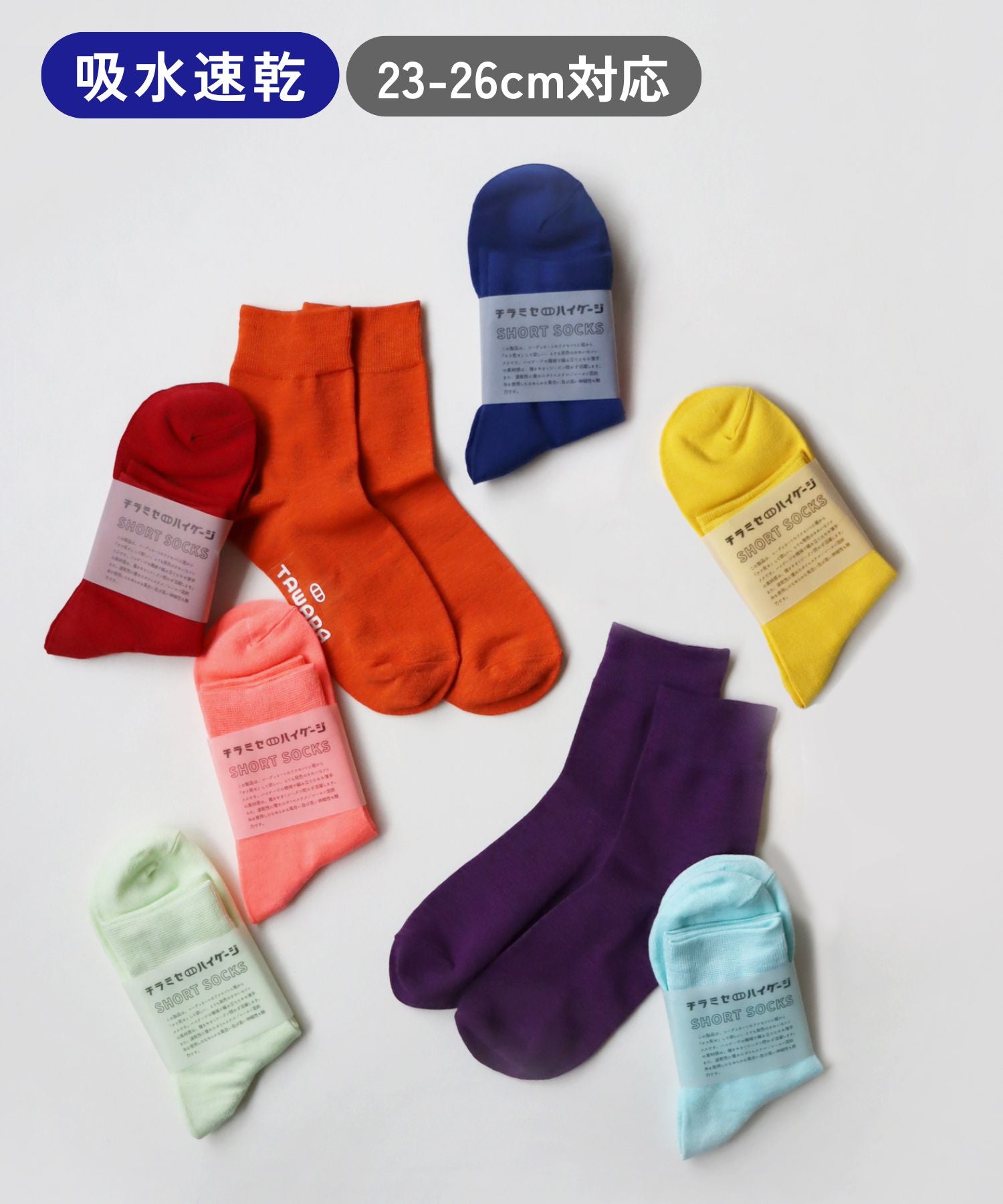 レーヨン混のハイゲージで編み立てているので、履き心地がとってもなめらかで程よく薄手。サンダルやスニーカーなどでちらっと見えたらかわいい1足に仕上がりました。『チラッ』でも十分わかるアクセントカラーをメインにカラー展開をつくっています。さらに幅広のゴムでのびるのにホールド感もばっちりです◎