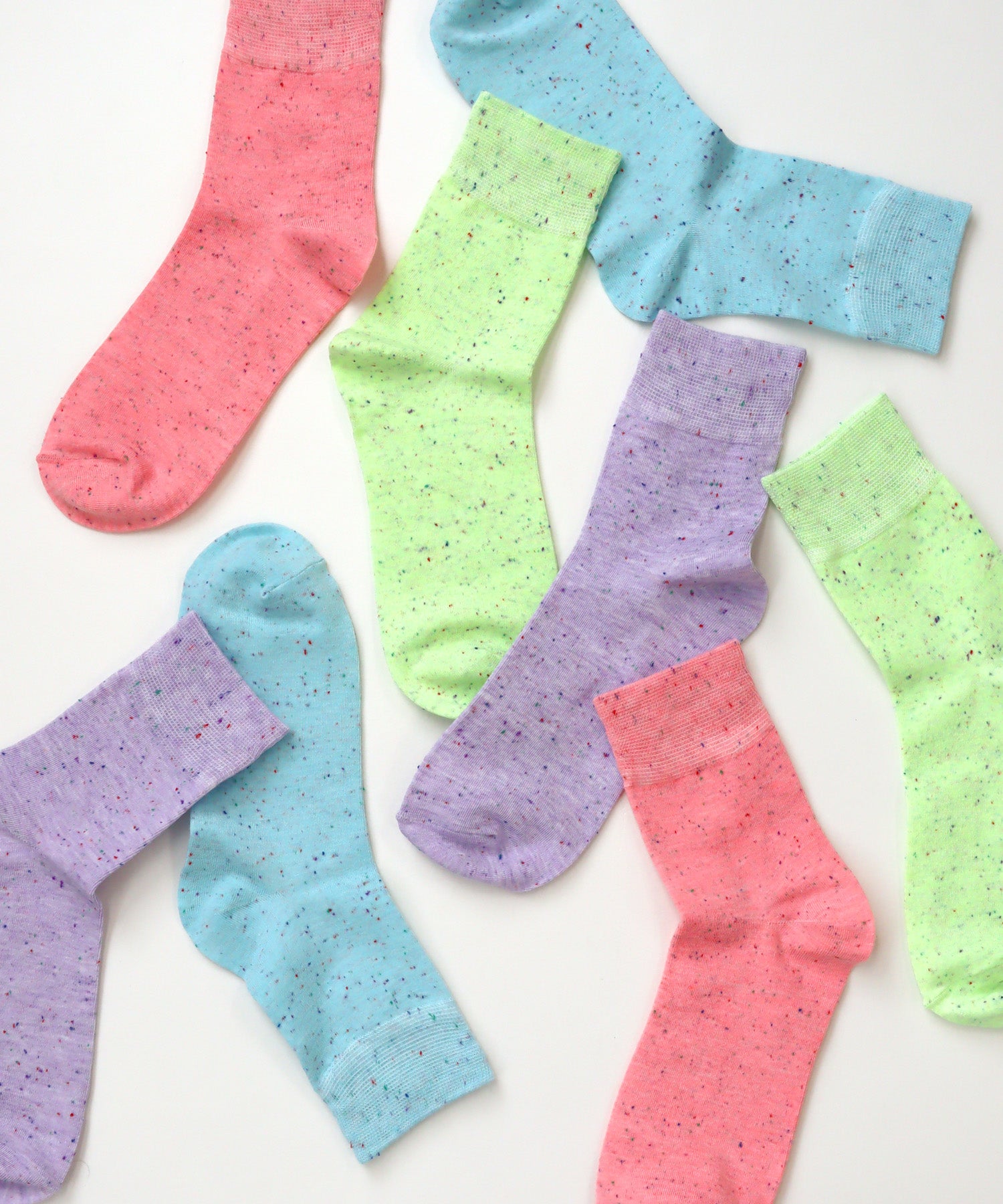 カラフルなつぶつぶネップが散りばめられた、まるでポッピン〇シャワーみたいなショートソックス☆