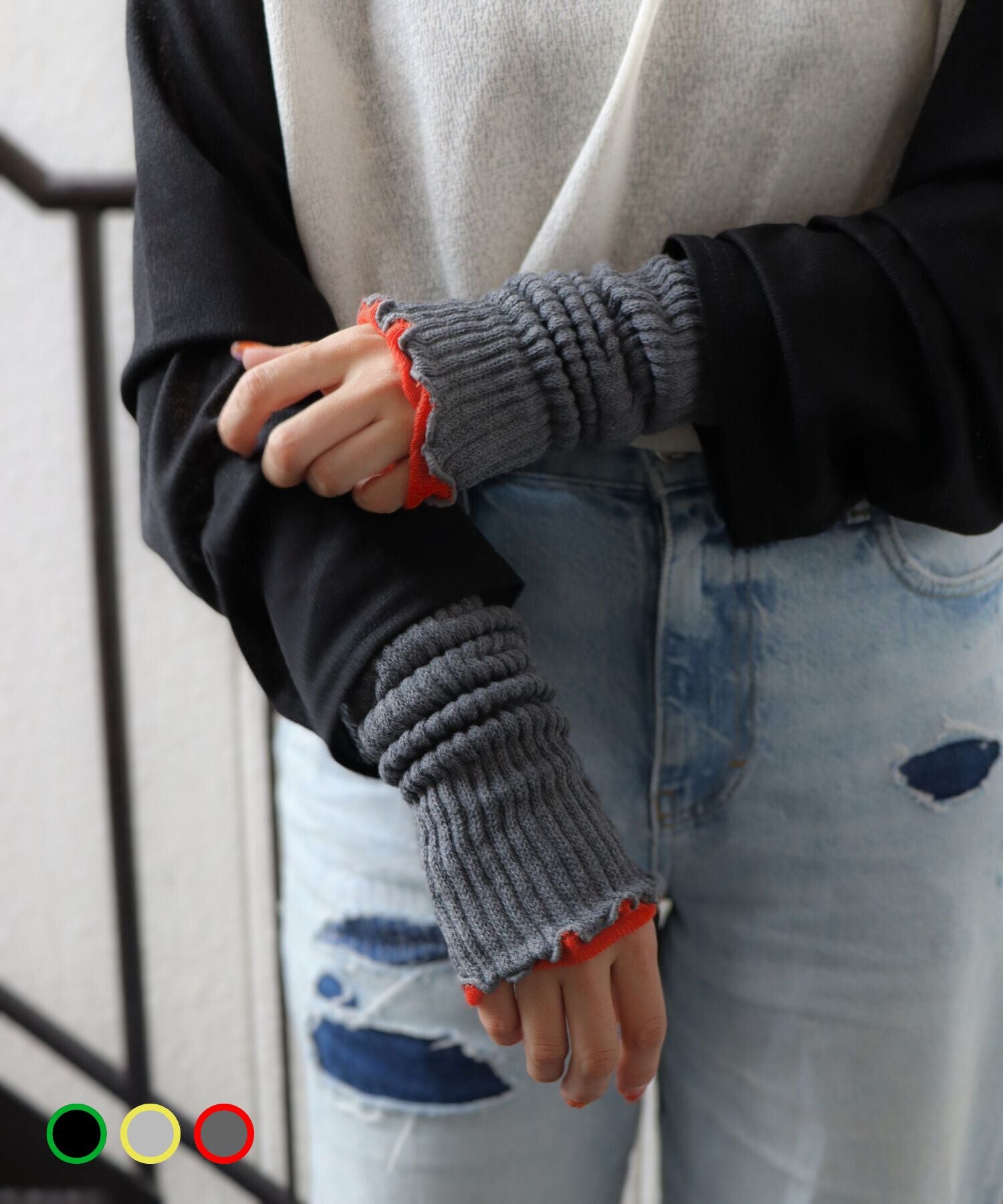 アームウォーマーにもレッグウォーマーにもなる2WAYウォーマー。内側がコットン100%の2重編み構造でできているので肌触りも良く、保温力抜群です。工場で限界までゆるく編んでもらうことで大きくゆるくなり、そのままでは緩すぎて使いにくい為、ゴムをいれて大きなものをぎゅっとしているなので付け心地がフワフワになっています。見た目はナチュラルな印象になりすぎないよう内側にさりげない配色をいれることによって家でも外でも様々なシーンで活躍してくれます。