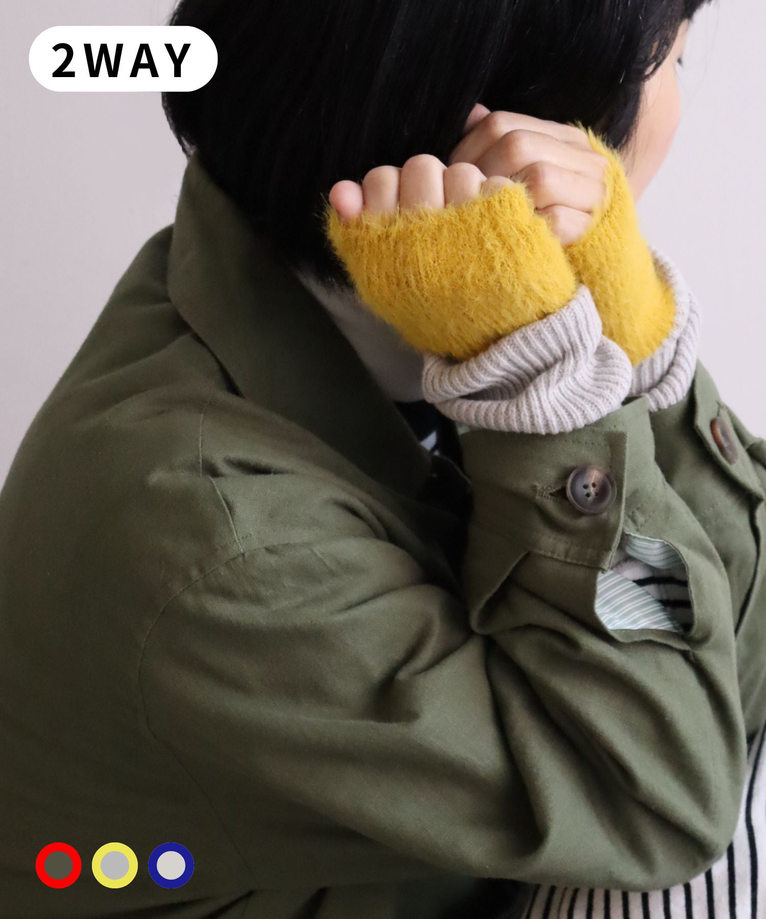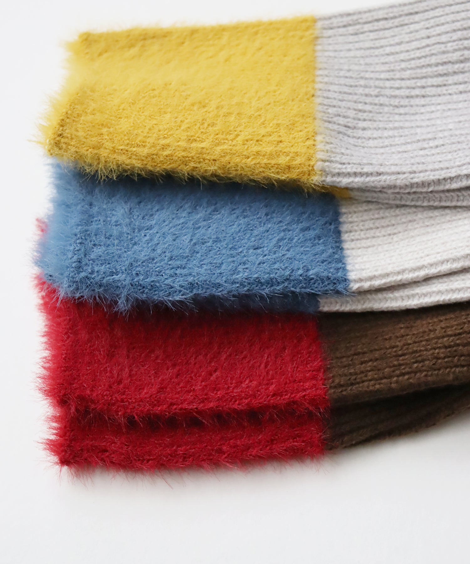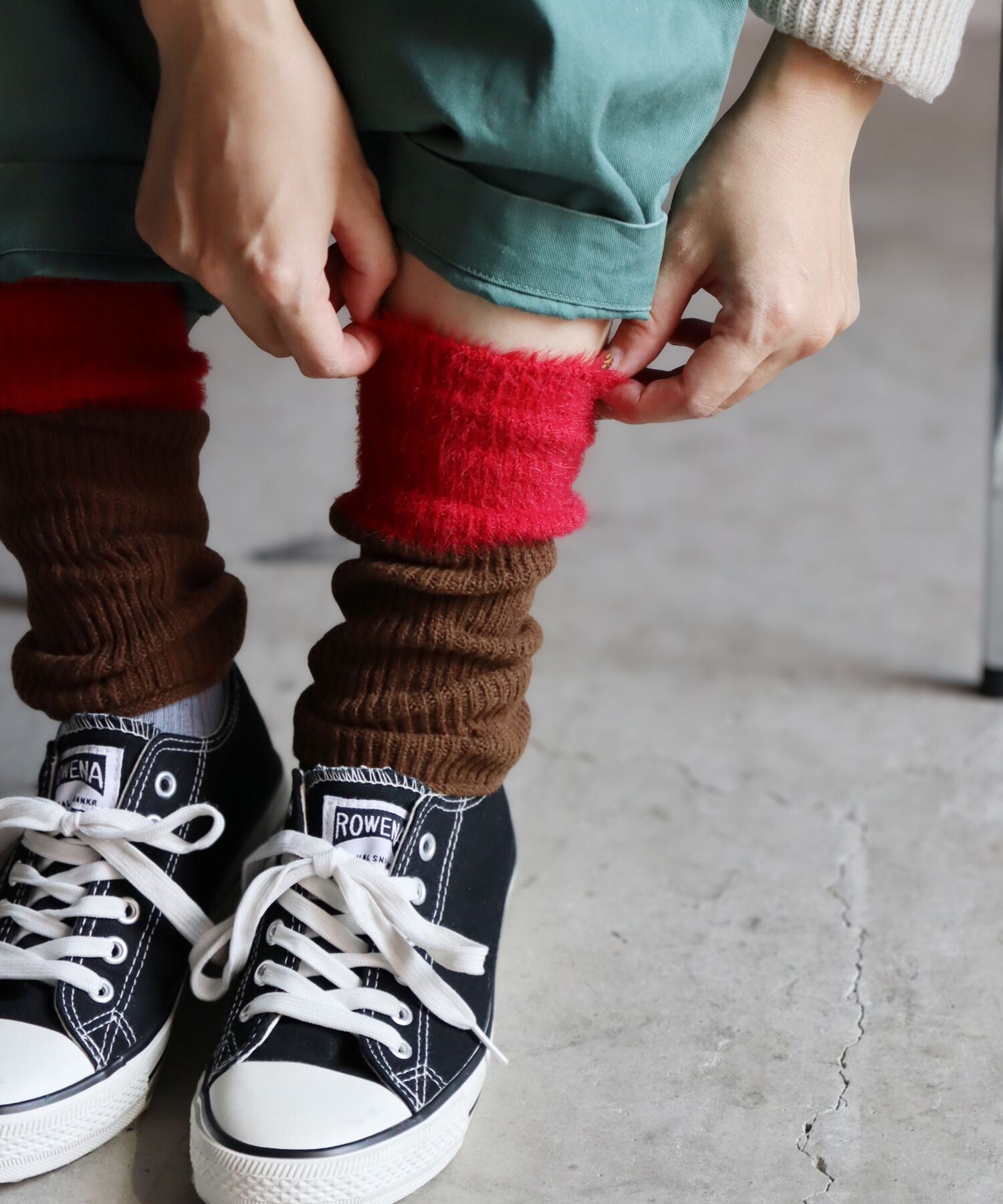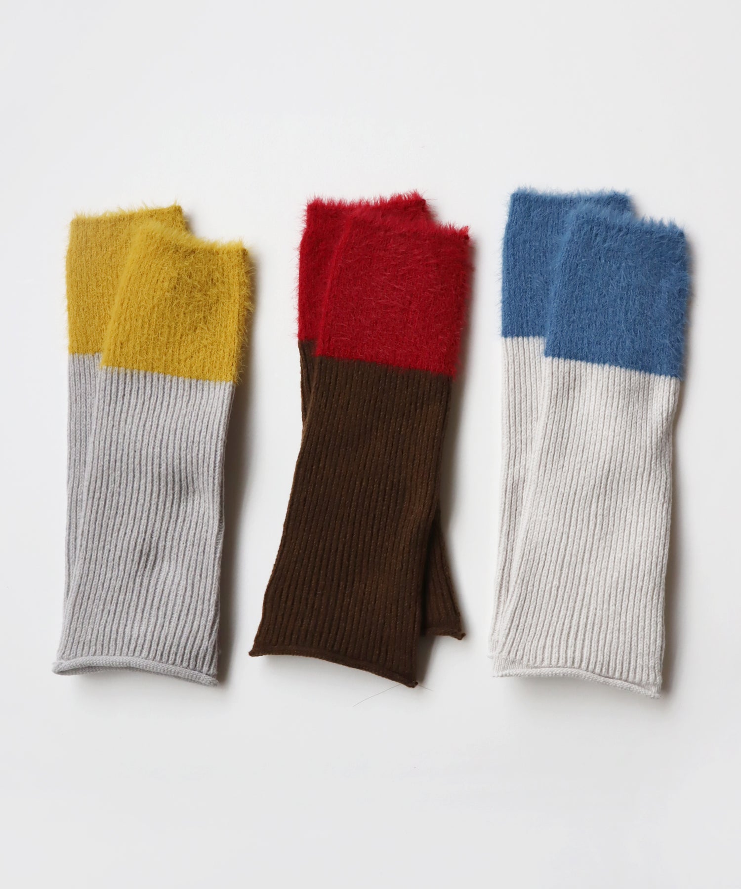 2WAY リブ&シャギー バイカラー アームウォーマー